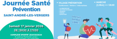 La Ville de Saint-André-les-Vergers vous invite à une Journée Santé – Prévention, le samedi 17 janvier 2026, au Complexe sportif Jean Bianchi.