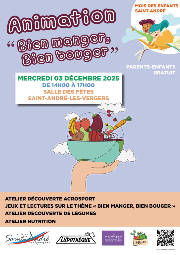 – Animation « Manger-Bouger » : le 3 décembre de 14h à 17h à la Salle des fêtes,