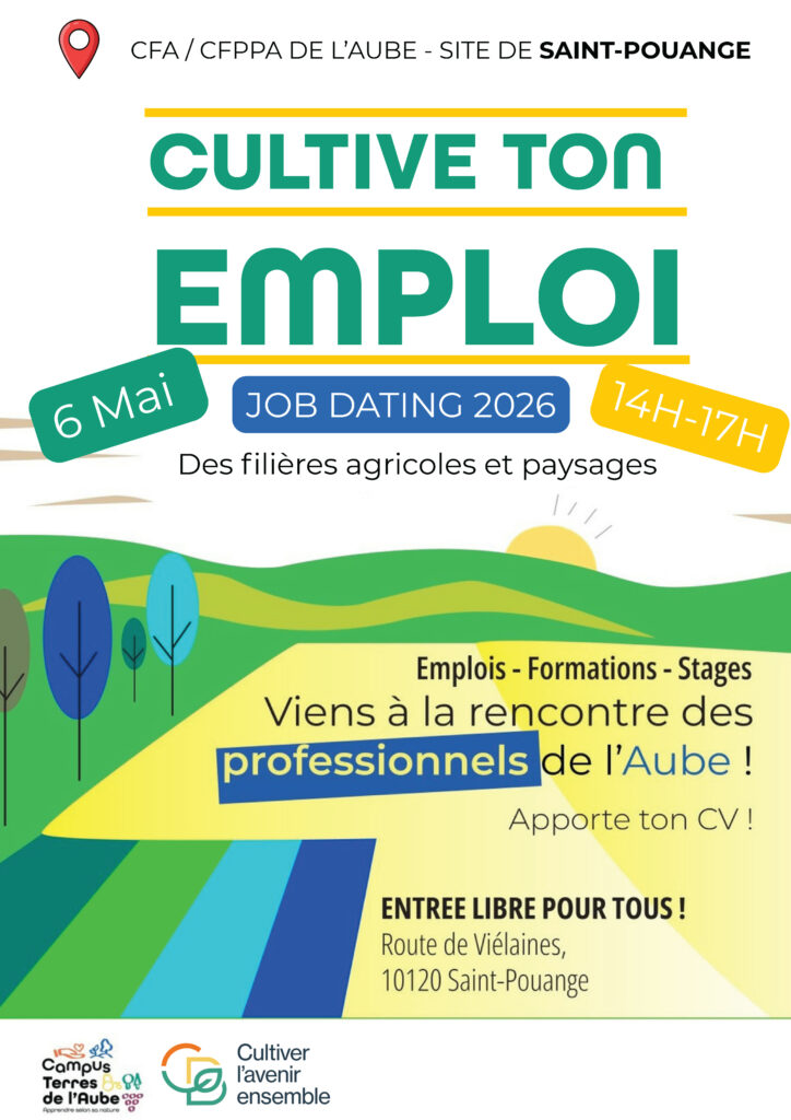 Le Campus Terres de l’Aube – Formations Adultes CFPPA vous donne rendez-vous pour une après-midi d’opportunités concrètes sur son site de Saint-Pouange ! Venez rencontrer et échanger avec les agents de nos Services Techniques Municipaux !