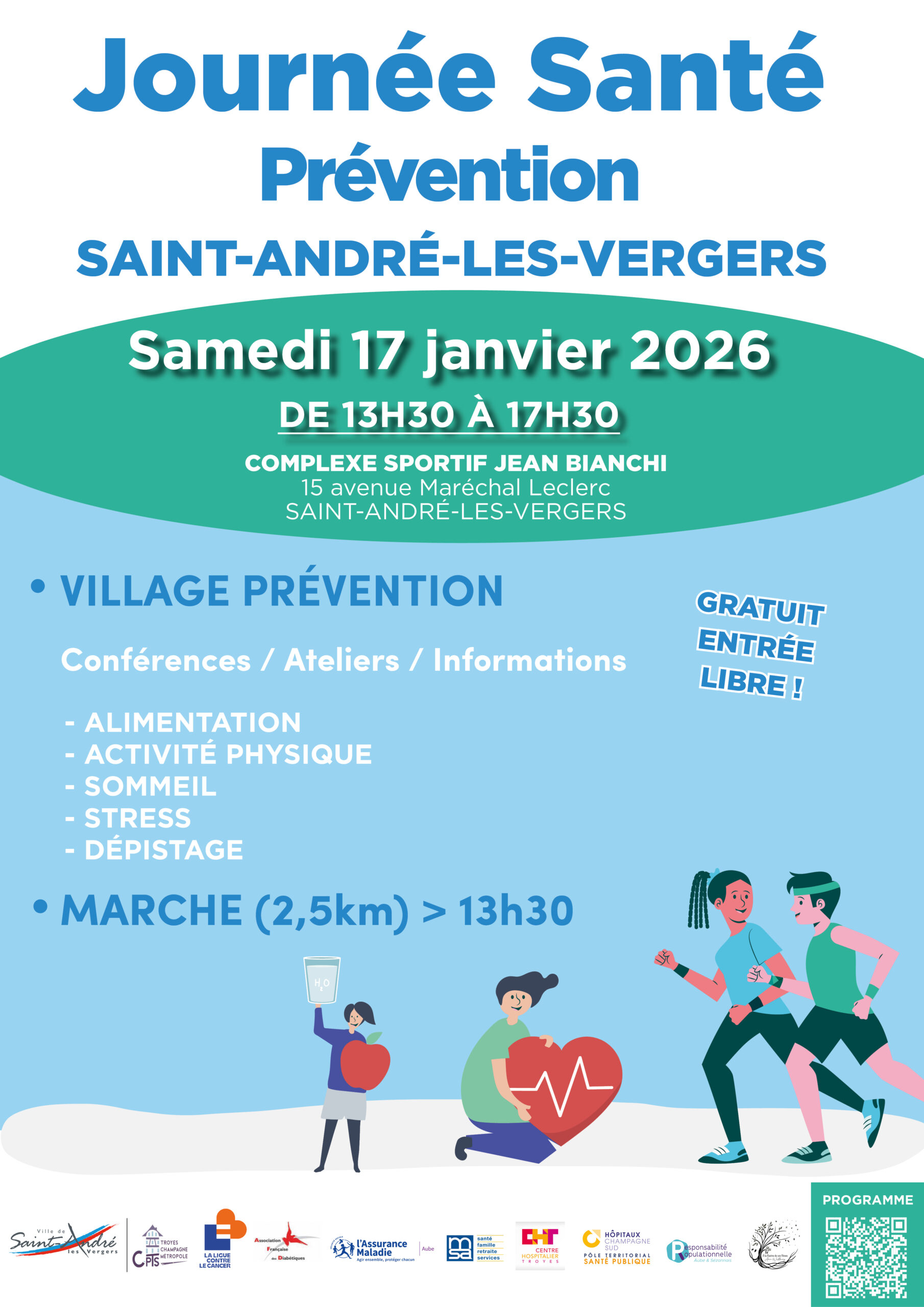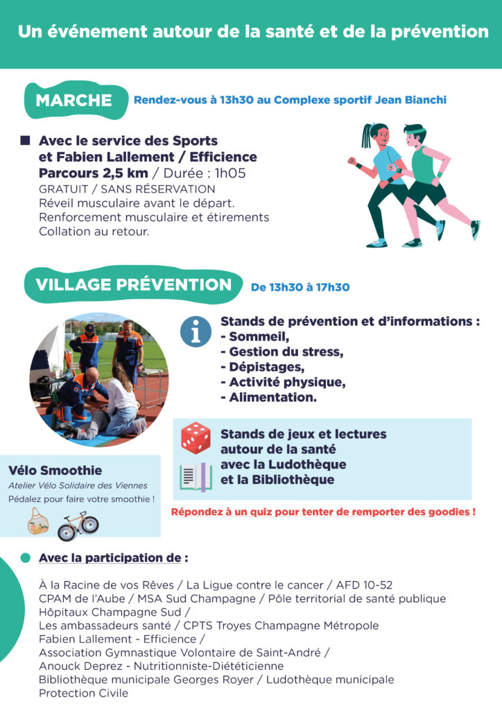 La Ville de Saint-André-les-Vergers vous invite à une Journée Santé – Prévention, le samedi 17 janvier 2026, au Complexe sportif Jean Bianchi.